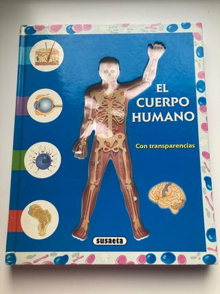 Libro educativo sul corpo umano con pagine trasparenti. Illustrazioni dettagliate dello scheletro, organi e sistemi. Esplora la pelle, l'occhio, le cellule e le ossa. Include un modello del cervello. Titolo: Il Corpo Umano con Trasparenze. Editore: Susaeta.