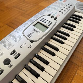 🎹 44 Tasti e 100 suoni: Include pianoforti, organi, archi, chitarre, bassi, sintetizzatori, percussioni, ecc. 🥁 30 Ritmi o pattern automatici Pop, Rock, Dance, Jazz, Latin, Marcia, Valzer, ecc. 🎼 10 canzoni integrate con funzione di apprendimento 📺 Schermo LCD con sistema “Musical Information System” 🔊 Altoparlanti stereo integrati. 🎵 Controlli di: Volume, Tempo, Tono, Ritmo, Song Bank, Start / Stop. 🎤 Ingresso microfono (MIC). 🎧 Uscita cuffie / audio (PHONES / OUTPUT) Consente di suonare in silenzio o collegarlo ad altoparlanti esterni. 🔌 Alimentazione: Adattatore DC 7.5V o 6 pile AA (portatile).