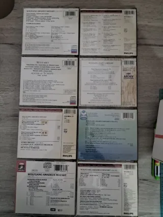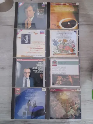 Lotto di 8 CD musicali dedicati a Wolfgang Amadeus Mozart, con interpretazioni di brani classici. - Andras Schiff - Mozart Piano Sonatas K.570, K.331, K.457 - Mozart - Piano Quartets K.478 & K.493 - Alfred Brendel - Mozart Piano Concertos K.467 & K.491 - Mozart - Concert Arias - Mozart - Sonatas for Piano and Violin K.301, K.304, K.378, K.454 - Mozart - Missa Brevis KV 258, Missa longa KV 262