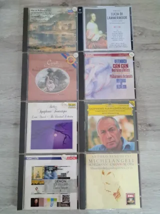 Lotto di 8 CD di musica classica. - Mendelssohn: Sinfonie Scozzese e Italiana - Donizetti: Lucia di Lammermoor - Carulli: Musica per Flauto e Chitarra - Offenbach: Can Can Overtures & Ballets - Berlioz: Symphonie Fantastique - Rachmaninov: Klavier Sonaten Nos. 1 & 2 - Denon New Releases Classical Sampler IV - Arturo Benedetti Michelangeli: Schumann Carnaval Op.9