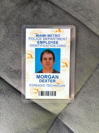 Dalla serie tv Dexter, replica della tessera di riconoscimento del protagonista interpretato da Michael C. Hall, serial killer ed esperto forense della Miami Metro Police. Stampata su carta fotografica e laminata. Da collezione/cosplay. Id card