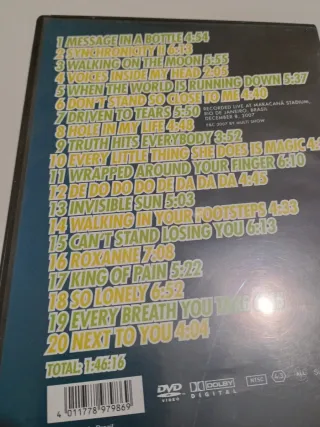 DVD del concierto Live in Rio dei The Police, registrato al Maracanã Stadium nel 2007. - Registrazione dal vivo. - Location: Maracanã Stadium, Rio de Janeiro. - Anno: 2007.