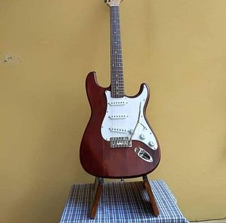 Chitarra artigianale assemblata. Livello principiante colore mogano, manico acero corpo in tiglio. Buon suono e maneggiabilitá.