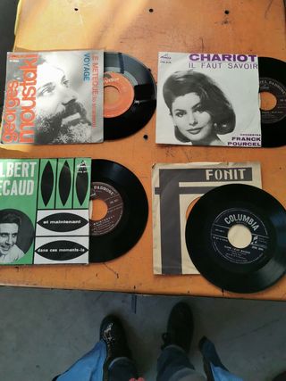 Vinili 45 giri : EDITH PIAF CHARIOT/FRANCK POURSEL GILBERT BECAUD GEORGES MOUSTAKI 5 euro cadauno, 15 euro se comprati in blocco. IDEA REGALO E COLLEZIONISTI