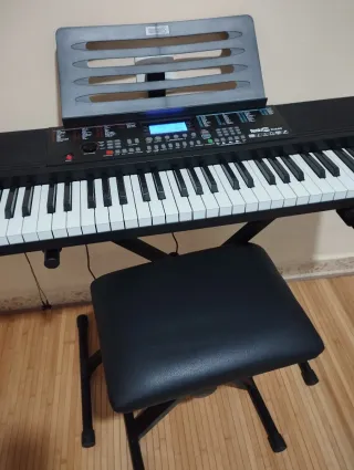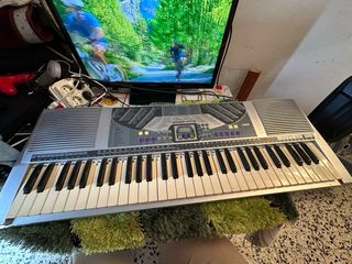 Teclado Casio MK-208 in ottime condizioni. Funziona correttamente con caricabatterie (incluso). Non funziona con batterie. Include leggio per spartiti.
