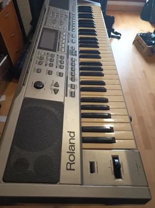 Tastiere Roland EXR-5 interattivo. Design argentato. Altoparlanti integrati. Schermo LCD. Tastiere a 61 tasti.