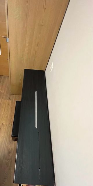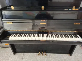 Piano verticale della marca ISANDA in colore nero. Si trova in buone condizioni. Dotato di tastiera completa con 88 tasti, finitura brillante e pedaliera inclusa.