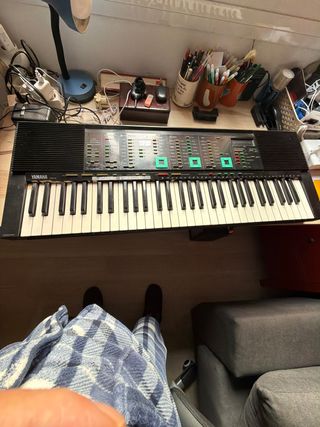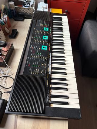 Piano elettronico Yamaha Portatone PSR-73 che funziona perfettamente, con leggio, trasformatore e la sua scatola originale. Disponibile per consegna a mano a Madrid.