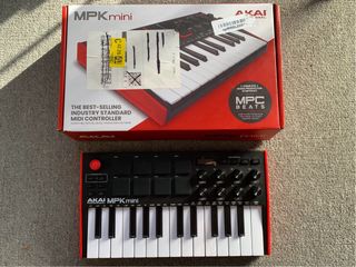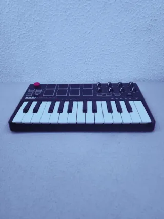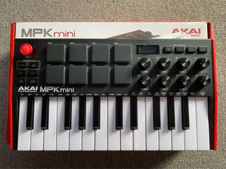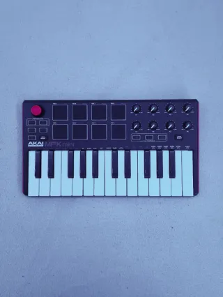 Controller MIDI Akai MPK mini. - 8 pad sensibili alla velocità. - 4 banchi di pad. - 8 potenziometri assegnabili. - Tastiera di 25 mini tasti sensibili alla velocità. - Pulsanti di trasporto. - Schermo LCD.