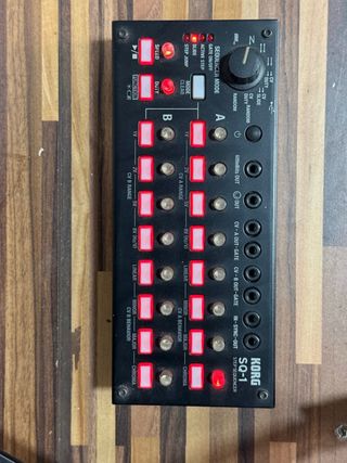 Sequencer Korg SQ-1 in colore nero. Progettato per la creazione musicale. Presenta graffi che non influiscono sul suo funzionamento. Design compatto e robusto. Pulsanti illuminati in rosso. Molteplici opzioni di connettività.