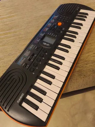 Tastierino elettronico Casio SA-76 con 44 tasti. - 100 toni incorporati. - 50 ritmi. - Canzoni di dimostrazione. - Altoparlanti integrati.
