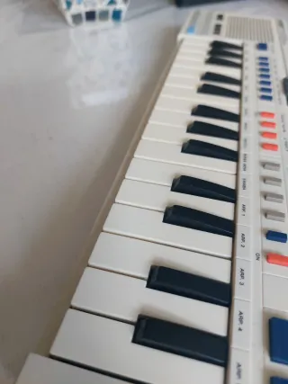 Tastiera Casio PT-20 con design compatto e portatile. - Tasti bianchi e neri. - Pulsanti di controllo nella parte superiore.