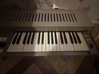 Organo elettrico vintage, modello Magnus Elect. Uno strumento con un design classico e attraente. Tastiera con 25 tasti bianchi e 20 neri. Controlli laterali. Griglia di ventilazione superiore.