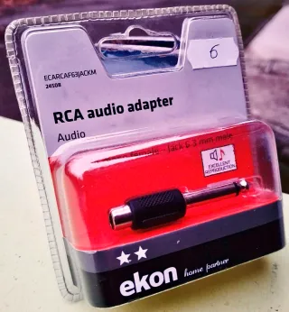 Vendesi cavo adattatore jack 3,5mm femmina/2 RCA femmina. Come si evince dalla foto, si tratta di un articolo NUOVO, mai utilizzato, conservato ancora nell'imballo originale.