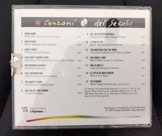 Vendo CD compilation "Le Canzoni del Secolo". - Include brani di Elton John, Miriam Makeba, Diana Ross & The Supremes, Chic, Kate Bush, Little Eva, Otis Redding, Platters, Modugno, Ben E. King, Velvet Underground, Billie Holiday, Louis Armstrong, Mina, Marvin Gate. - Perfetto per collezionisti di musica.