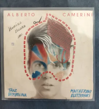 Disco in vinile di Alberto Camerini 7" 45 giri con i brani Tanz Bambolina e Maccheroni elettronici. - Titolo: Tanz Bambolina / Maccheroni Elettronici - Anno: 1982 Scritte sulla copertina come da foto