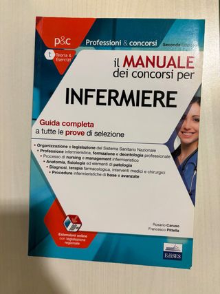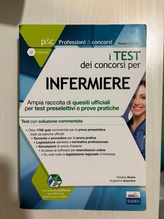 Vendo libro "I Test dei Concorsi per Infermiere" – Terza Edizione (EdiSES) - Oltre 1700 quiz commentati per prove preselettive e pratiche - Comprende legislazione sanitaria, tecniche e simulazioni d’esame - Accesso a software per esercitazioni online Ottime condizioni, come nuovo. Contattami per info o foto aggiuntive.