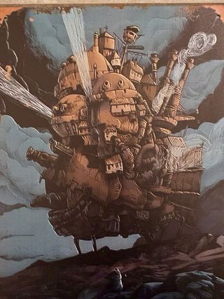 Bellissimo poster di Howl's Moving Castle, realizzato in alluminio. Le sue dimensioni sono 31x21 cm circa. - Perfetto per decorare la tua casa! -Il poster è in ottime condizioni, come mostrato nelle foto. -Un pezzo unico per gli amanti dello Studio Ghibli!