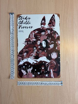 Bellissimo poster in metallo di Studio Ghibli, raffigurante i personaggi più amati dei film di Hayao Miyazaki. - Ottime condizioni - Materiale: metallo - Dimensioni: 21x30 cm circa