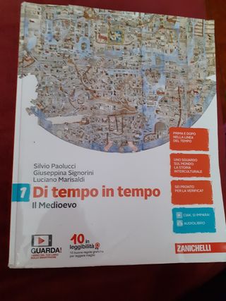 Libro di tempo in tempo 1 Libro di tempo in tempo 2 presentano pagine sottolineate con evidenziatore e esercizi svolti per la scuola media inferiore o per preparasi a un esame o un concorso
