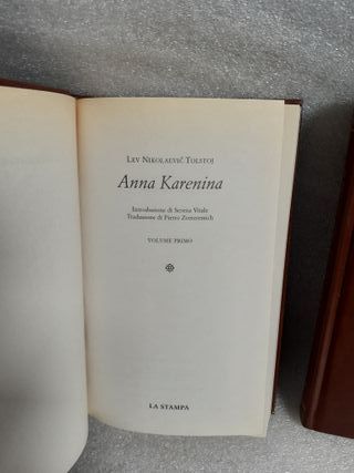 Anna Karenina di Lev Tolstoj Due volumi. Torino, La Stampa, 2003. Rilegato, copertina rigida, similpelle marrone. Ottimo stato generale, minimi segni del tempo ( brunimento esterno pagine del secondo volume). Classico della letteratura russa e mondiale. Collezione.