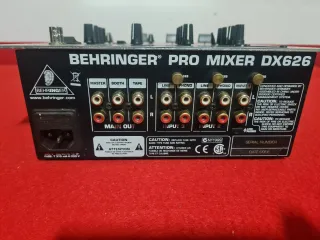 Mixer Behringer DX626. - Connessioni Master, Booth e Tape. - Ingressi Line, Phono e Input 1, 2, 3. - Alimentazione tramite cavo IEC. - Indicazioni di sicurezza e certificazioni CE, CSA.