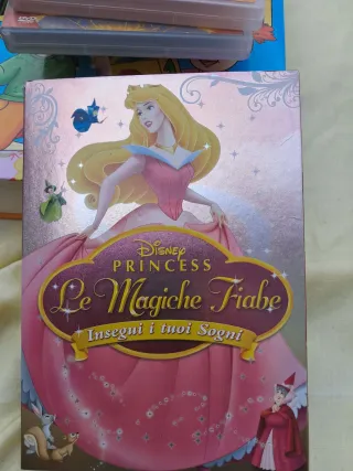 DVD delle Principesse Disney, intitolato Le Magiche Fiabe - Insegui i tuoi sogni. - Copertina con illustrazioni di Aurora e altre principesse. - Contiene storie incantate.