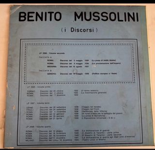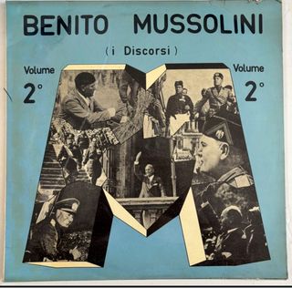 Disco in vinile I Discorsi di Benito Mussolini, Volume 2. Vinile nuovo mai suonato - Copertina con collage di immagini storiche. - Edizione in vinile.