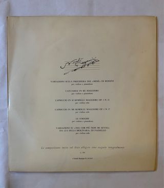 Vendo 1 LP dedicato a Niccolò Paganini, dalla storica collana “I Grandi Musicisti” – Fratelli Fabbri Editori. Edizione editoriale di pregio, con vinile + fascicolo originale. Dettagli del disco • Collana: I Grandi Musicisti • Numero: IGM 015 • Autore: Niccolò Paganini • Formato: LP 33 giri Condizioni • Vinile: NM (Near Mint), molto ben conservato • Copertina: buone condizioni, normali segni del tempo • Fascicolo: presente e completo • Busta interna: originale Disco pulito, senza graffi evidenti.