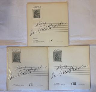 Lotto di 7 volumi originali: III–IX. Comprende le Sinfonie dalla n. 3 “Eroica” alla n. 9 “Corale”. Volumi III e IX con doppio LP. Vinili in condizioni NM, ben conservati. Fascicoli originali presenti e completi, inner sleeve originali. Serie quasi completa, mancano solo i volumi I e II. Alcuni volumi ancora nel cellophane editoriale Fabbri.