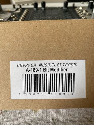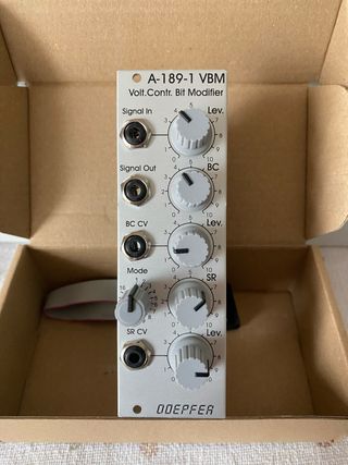 Modulo Doepfer A-189-1 VBM Volt.Contr. Bit Modifier per sintetizzatori modulari. Con scatola originale. Nuovo. - Ingresso Signal In. - Uscita Signal Out. - Controllo BC CV. - Selettore Mode. - Controllo SR CV. - Manopole Lev. e BC. - Manopola SR. - Manopola Lev. - Include cavo flat.