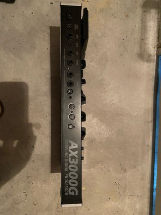 Pedaliera multieffetto AX3000G Include 72 modelli di amplificatori ed emulatori di altoparlanti L'AX3000G include effetti sintetizzatori che riproducono un sintetizzatore per chitarra Dimensioni del prodotto 32,8 cm x 13,5 cm x 64,3 cm • tipi di amplificatori: 16 • tipi di cabinet: 11 • effetti: tipi di pedali: 11, Tipi di modulazione: 11 Tipi di ritardo: 11 Tipi di riverbero: 11 Riduzione del rumore: 1 • Numero di programmi: 96 (24 banchi x 4 canali) • Ingressi audio: INPUT (jack telefonico da 1/4"), INSERT RETURN (jack telefonico da 1/4"), AUX IN (mini-jack stereo) • Uscita audio: USCITA x 2 Non include il cavo di alimentazione da 9 V