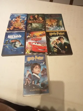Lotto di DVD Walt Disney con film d'animazione per tutta la famiglia. - sono 6 DVD e una cassetta di Harry Potter - vari titoli - Orso Fratello Orso - Alla Ricerca di Nemo - Cars - Harry Potter e la Pietra Filosofal - tutti originali Walt Disney
