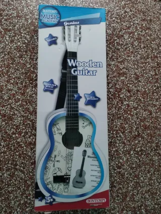 Chitarra Bontempi in legno, ideale per i più piccoli. - Modello Wooden Guitar della linea Music Academy Genius. - Strumento in legno, con 6 corde. - Colore bianco con disegni colorati. - Tracolla inclusa.