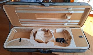 Custodia per violino rettangolare leggerissima ma robusta mai usata pari al nuovo. Ganci per 4 archi, scomparto per accessori, tasca esterna, tracolle. consegna a Roma nord