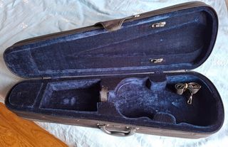 Custodia per violino Custodia per violino sagomata nera leggerissima ma robusta mai usata pari al nuovo. Ganci per 2 archi, scomparto per accessori, ampia tasca esterna, tracolle