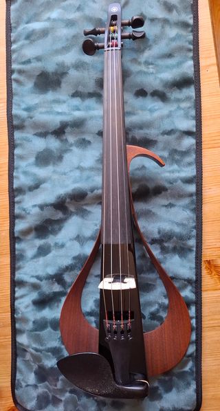 YAMAHA YEV-104 Violino Elettrico usato pochissimo, pari al nuovo, Corpo in abete rosso, mogano e acero, Manico in acero, Struttura in noce, Cordiera con accordatura fine, Ponticello in acero con Pickup piezo integrato, Selettore per Direct-Passive-Output o per il Volume Control, Piroli e mentoniera in ebano, Corde: Daddario Zyex. Come nuovo e perfettamente funzionante