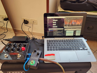 Pedale che funziona come scheda audio 24bit/48KHz a bassa latenza (con Driver Asio dedicati). Possiede un ingresso per strumento, uscita stereo su doppio jack, ingresso aux, uscita cuffie e uscita DI. Il bottone funziona come switch direct monitor/bypass. comodi controlli per regolare il gain in ingresso e il volume di uscita generale. In perfette condizioni estetiche e funzionali. Ottimo per suonare con strumenti virtuali e app tipo Tonex, Amplitube, Neural Amp Modeler etc. Ho altri pedalli in vendita, controlla e crea un set per acquisti multipli. - Design compatto e robusto. - Controlli intuitivi per la gestione del suono.