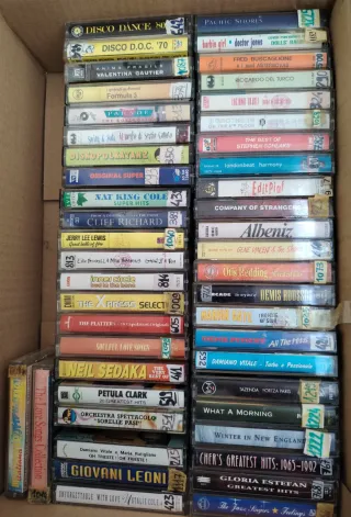 Lotto di 50 musicassette con generi musicali assortiti. - Vasta selezione di artisti e generi. - Perfetto per collezionisti e appassionati di musica. - Ogni cassetta è un pezzo unico.