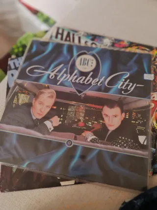 Vinile Alphabet City del gruppo ABC. - Copertina con design a fiamma blu. - Immagine dei due membri del gruppo all'interno di un'auto con sfondo notturno di una città. In buono stato senza graffi