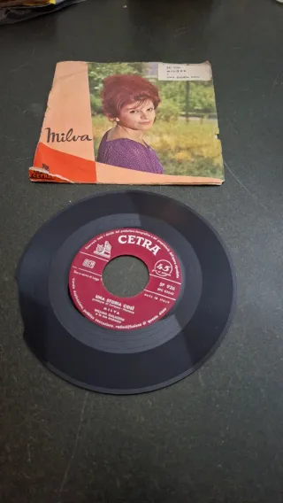 Disco in vinile a 45 giri di Milva. Bordo rotto - Lato A: Milord - Lato B: Una Storia Così - Etichetta: Cetra - Codice: SP 926 - Made in Italy