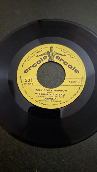 Disco in vinile 33 giri Ercole Lojacono. No copertina - Brani inclusi: Holly Golly Madison, Ti Parlerò Coi Baci, Cammina. - Etichetta Ariston. - Lato B: ERPTO B.