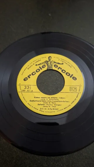 Disco in vinile a 33 giri dell'etichetta Ercole. Artisti vari No copertina - Lato A: Come nasce un amore (Fidenco), canta G. Gionchetta - Lato A: Caffettiera twist (Freeman-Cassie-Da Vinci), canta M. Terzi - Lato B: Selane (Migliacci-Modugne), canta M. Terzi - Orch. dir. da Big Mitchell