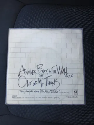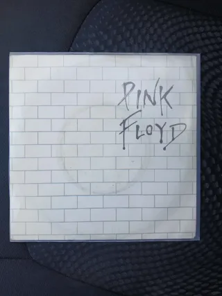 Disco in vinile 45 giri dei Pink Floyd, disco in perfette condizioni. - Copertina con motivo a mattoni bianchi. - Scritta Pink Floyd a mano sulla copertina.