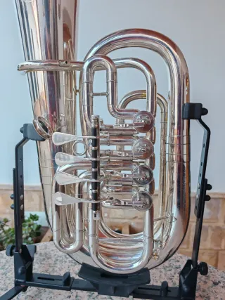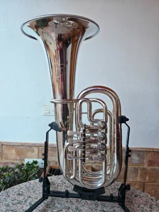 Bombardino ROTT con finitura argentata. Accordatura Do (include anche la pompa per Si bemolle). Lo strumento non ha bisogno di presentazioni, chi suona il bombardino in Do sa di quale strumento stiamo parlando, niente a che vedere con i cinesi, jinbao, consolat, ecc. In perfette condizioni e completamente revisionato da liutaio (si include la fattura e si può contattare per conoscere lo stato dello strumento). Compra e suona. Puoi vederlo e provarlo senza alcun impegno. Hai appena visto un unicorno, non pensarci!