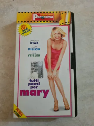 VHS del film Tutti pazzi per Mary, una commedia cult. Usato - Con Cameron Diaz, Matt Dillon e Ben Stiller. - Edizione I Grandi Film di Panorama. - Etichetta Prima Visione.
