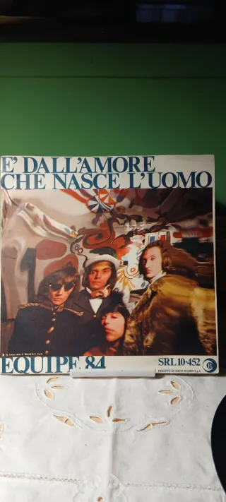 Disco in vinile di 29 Settembre/E' dall'amore che nasce l'uomo degli Equipe 84. - Copertina con immagine del gruppo. - Etichetta Bandiera Gialla. - Codice catalogo: SRL 10-452. Il disco presenta delle ombre (non so se sia nato cosi) suona perfettamente