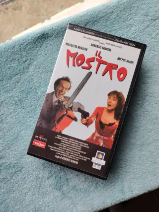 VHS del film Il Mostro, una commedia con elementi horror. - Diretto e interpretato da Roberto Benigni. - Con Nicoletta Braschi e Michel Blanc. - Prodotto da Aurelio De Laurentiis.