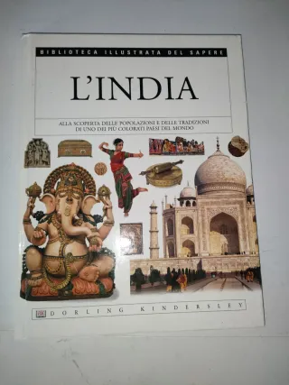 Libro illustrato a colori sull'India, edizione Dorling Kindersley, collana Biblioteca illustrata del sapere, in copertina rigida. Dedica interna a penna sulla prima pagina