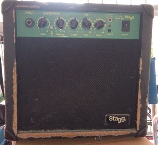Amplificatore 10GA EU per chitarra elettrica. Marca STAGG. Perfettamente funzionante. Purtroppo rovinato esternamente, come si vede dalle foto.